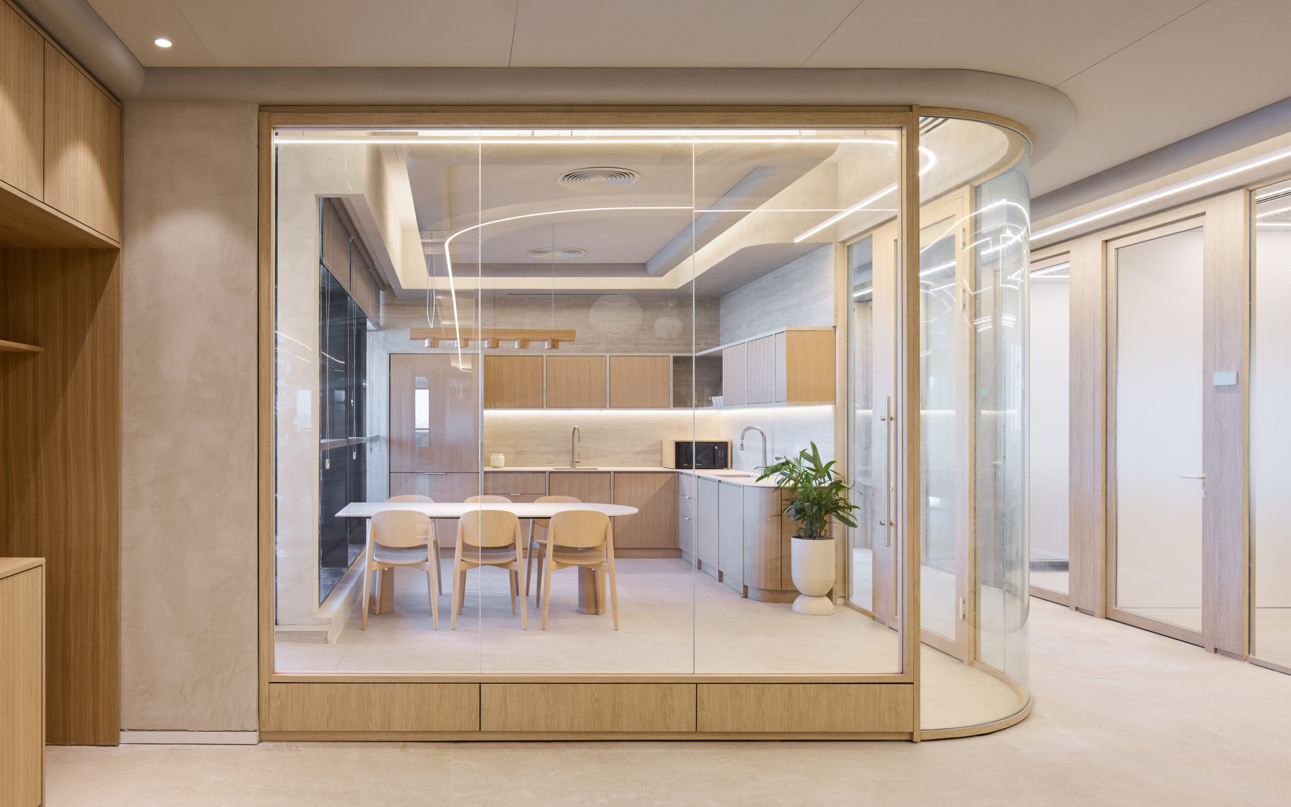 Sculptural bridge like gallery space